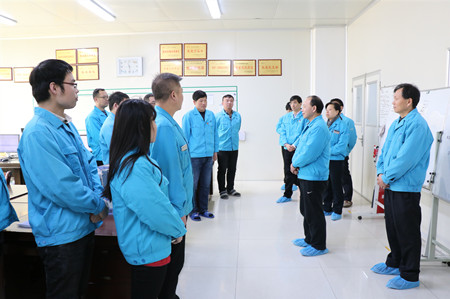 | ??????? 2月11日,是公司春節過后上班的第一天。上午9時許,公司董事長李智超、總經理付勇帶領領導班子成員深入各職能部門、各事業部看望廣大員工。公司領導一行步伐鏗鏘,每到一處都向廣大職工送去新年的祝福,并簡要介紹了公司發展形勢,勉勵廣大職工在新的一年繼續發揚奮斗精神,推動各項工作再上新臺階。 |
