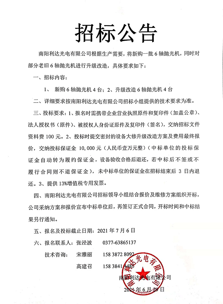 - (2025-07-17)利達光電公開招聘財務部部長擬錄用人員公示