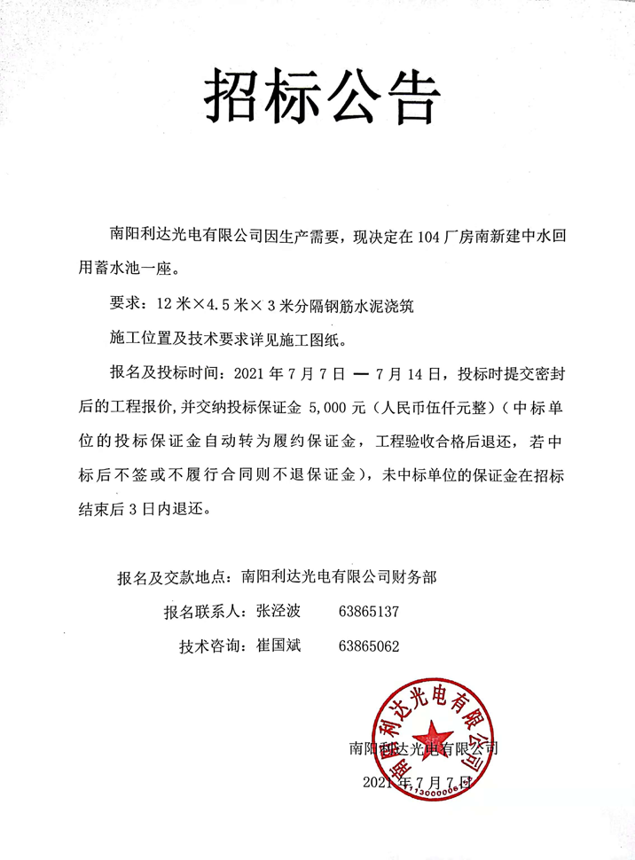 - (2022-09-29)光電新區三期廠房一層裝修施工的招標公告
